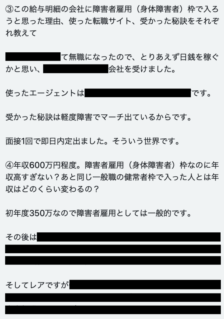 【人事として障害者雇用の現状に詳しい身体障害者お兄さん】障害者雇用30代前半で年収600万円の男性から給与明細を買い取らせて頂きました。障害者枠は精神障害者よりも身体障害者で埋めたいのが企業の本音。今回は会社名はもちろん障害者雇用の現実も書いといたから参考にするように!とのことです。 pic.twitter.com/p0xFFCtr0w
