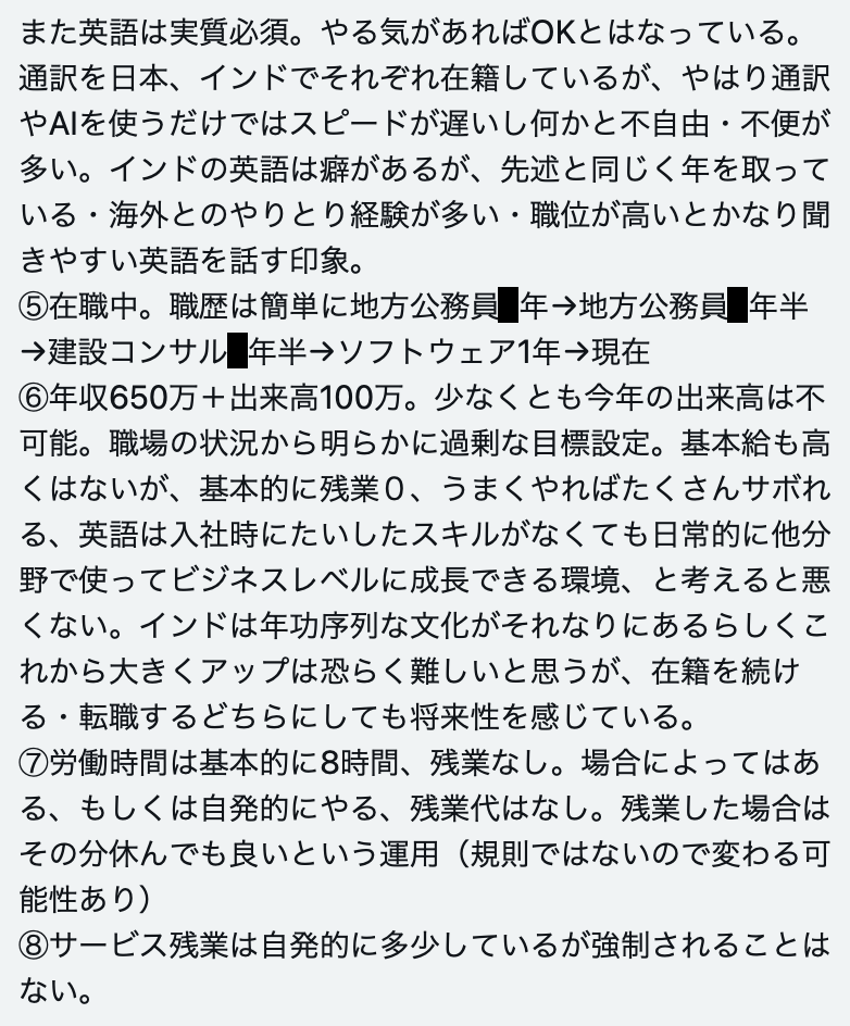 地方公務員→地方公務員→建設コンサル→ソフトウェア→インドの会社(転職入社30代前半で年収650万円+出来高100万円)