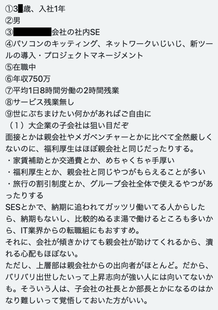 SESから大企業子会社の社内SEに転職したら年収が300万円も上がった男(転職入社30代前半で年収750万円)