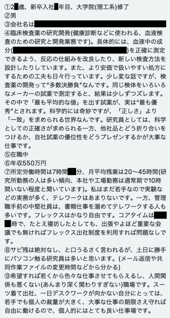 【健康診断で使われる検査薬の研究開発してる男】院卒入社20代後半で年収550万円の男性から給与明細を買い取らせて頂きました。若手でも裁量が大きく人間関係も悪くない。かなり働きやすい。本社文系職は毎日定時上がりみたい。会社名書いといたから健康に関する仕事してみたい方は是非とのことです。 pic.twitter.com/c4oSayRwLx