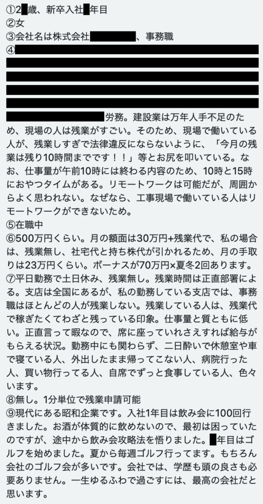 【大手建設会社で暇な事務員してる金融コンサル内定辞退女】大卒入社20代前半で年収500万円の女性から給与明細を買い取らせて頂きました。建設業の事務はホワイトだと聞いてた。実際に仕事量は少なく現在は午前10時に仕事が終わる。正直言って暇。会社名書いといたから暇したい方は是非とのことです。 pic.twitter.com/CFj9Jfmvg0