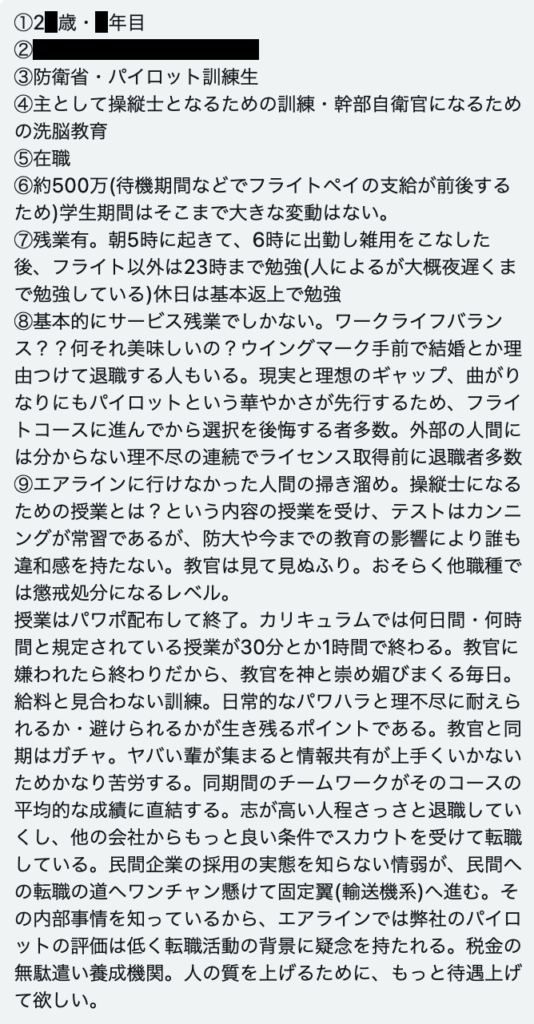 【洗脳が解けてしまった自衛隊のパイロット訓練生】大卒入社20代中盤で年収500万円の方から給与明細を買い取らせて頂きました。授業はゴミで教官はオレの栄光と題した自慢話と下ネタ話ばかりしている。テストはカンニングし放題で教官は見て見ぬふり。普通の会社だったら懲戒処分レベルとのことです。 pic.twitter.com/dsR6ruza4j