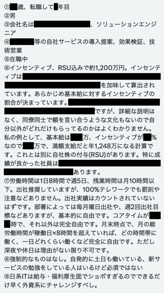 【零細IT企業→中堅SIer→ホワイト外資ITのソリューションエンジニア】転職入社40歳くらいで年収1200万円の男性から給与明細を買い取らせて頂きました。頼れば誰かしら助けてくれる文化がある。残業は月10時間以下。非常に働きやすい。会社名も書いといたから外資ITに興味がある方は是非とのことです。 pic.twitter.com/TOaqIqTykL