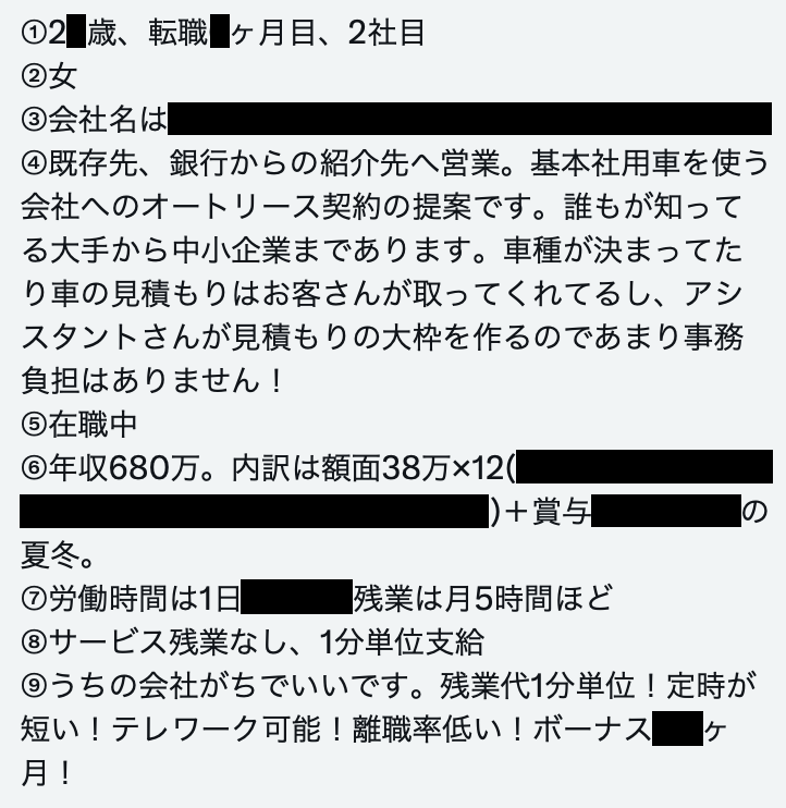 【ホワイト高給オートリース会社で営業してる低学歴女】転職入社20代後半で年収680万円の女性から給与明細を買い取らせて頂きました。残業月5時間くらい。この会社ガチで良い会社。残業代1分単位、所定労働時間短め、テレワークあり、離職率低め。会社名書いといたから低学歴の方は是非とのことです。 pic.twitter.com/aofdwdYSC6