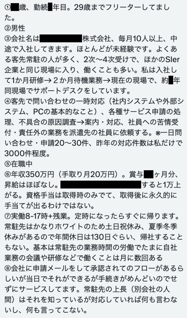 【社員数1000人超えSESでサポートデスクしてる29歳までフリーター男】転職入社30歳くらいで年収350万円の男性から給与明細を買い取らせて頂きました。IT行きたいって言ってるのに、転職エージェントにやたらと施工管理を勧められた。会社名書いといたからIT行きたいフリーターの方は是非とのことです。 pic.twitter.com/UZftSMndVT