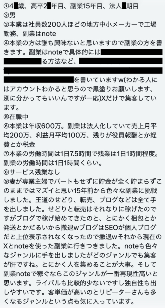 【1日1時間労働の副業noteで本業の3倍以上稼ぐ高卒副業マニア】40代中盤で副業法人売上2400万で副業法人利益1150万の男性から給与明細を買い取らせて頂きました。15年くらい色々な副業をしてきた。今回はnoteの内容もガッツリ書いといたからnoteで月200万稼ぎたい人は参考にするように!とのことです。 pic.twitter.com/P5zIbieeda